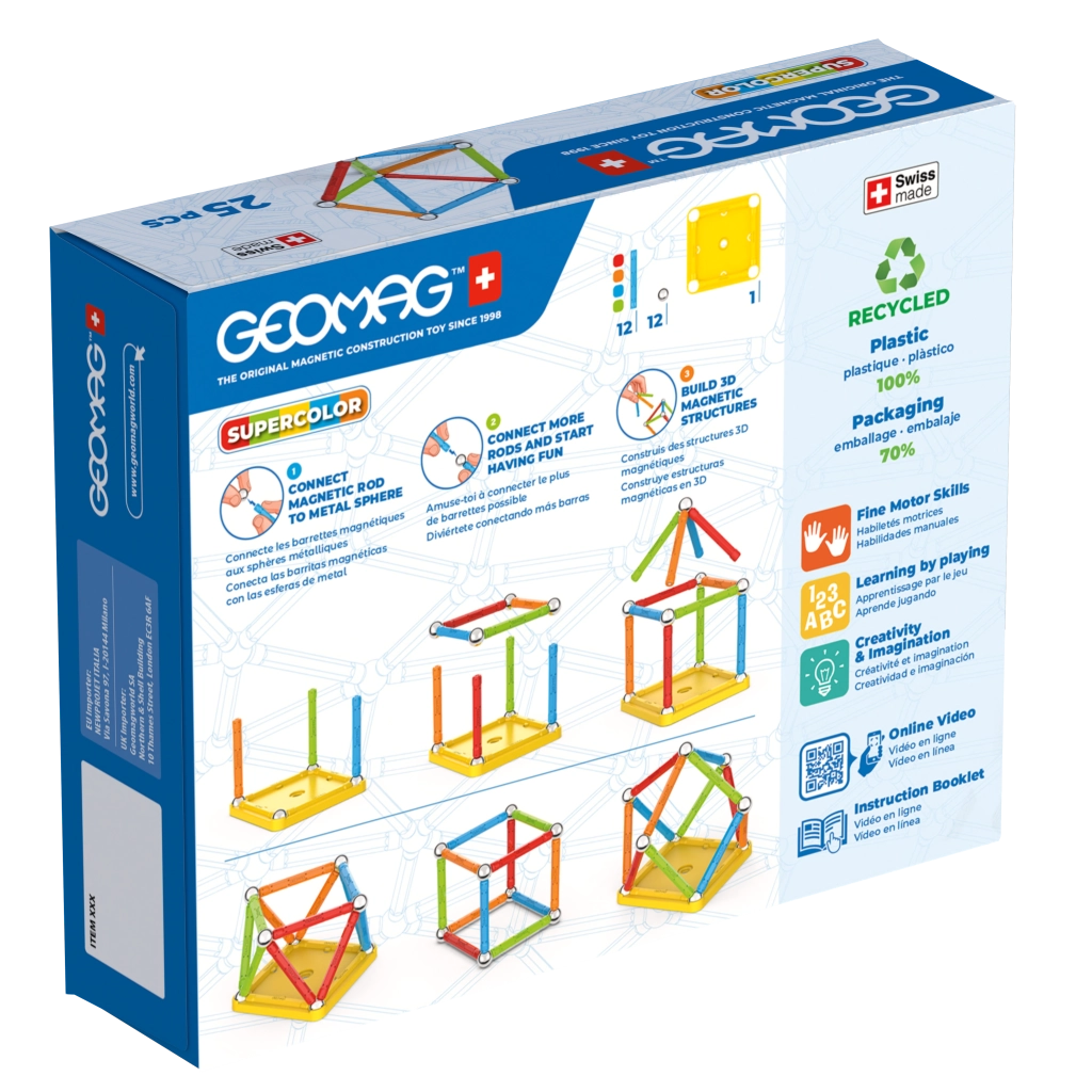 Lumea magnetică Geomag te atrage imediat în creație și descoperire. Seturile originale de construcție magnetice Geomag combină bețișoare magnetice, bile metalice și panouri colorate în construcții 3D stabile, care dezvoltă motricitatea fină, gândirea logică și imaginația spațială. Descoperă magnetismul, unde fiecare construcție este creativă, educativă și plină de distracție – jucăria ideală STEM pentru copii.