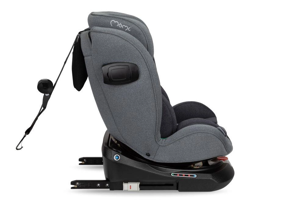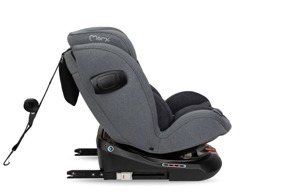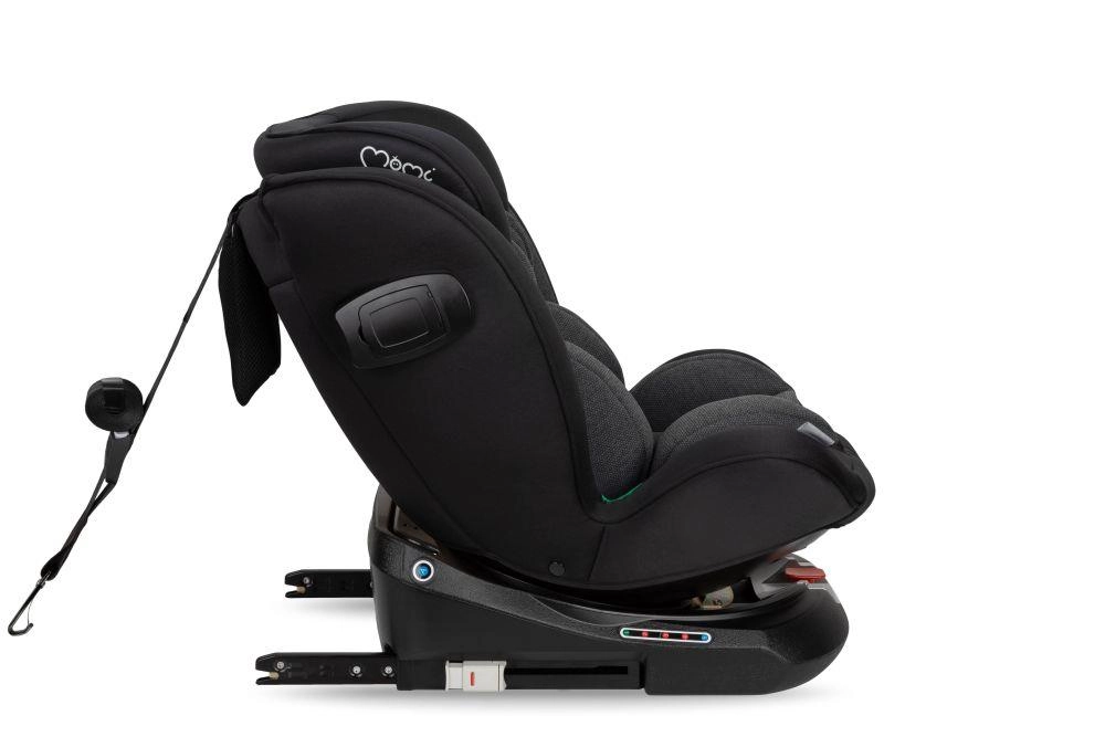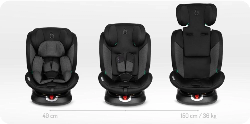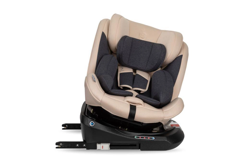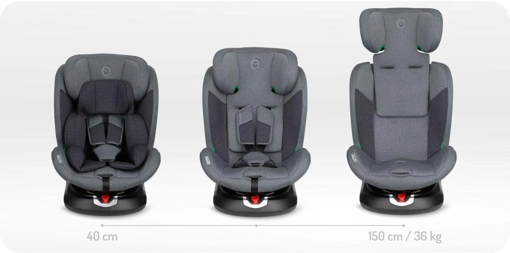 La alegere, urmăriți omologarea ECE R129 (i-Size) sau ECE R44/04, tipul de fixare (ISOFIX cu Top Tether sau picior de sprijin, ori centura de siguranță) și elementele-cheie de protecție: protecție laterală pentru cap și trunchi (SIP), centură în 5 puncte, materiale cu absorbție de energie și indicatori pentru instalare corectă. Sistemul rotativ de 360° ușurează așezarea copilului, tetiera reglabilă și pozițiile de înclinare asigură confort chiar și pe distanțe mai lungi. Pentru cea mai bună protecție, este recomandat ca copilul să fie transportat cu spatele la direcția de mers cât mai mult timp (reboard), la i-Size cel puțin până la 15 luni.
