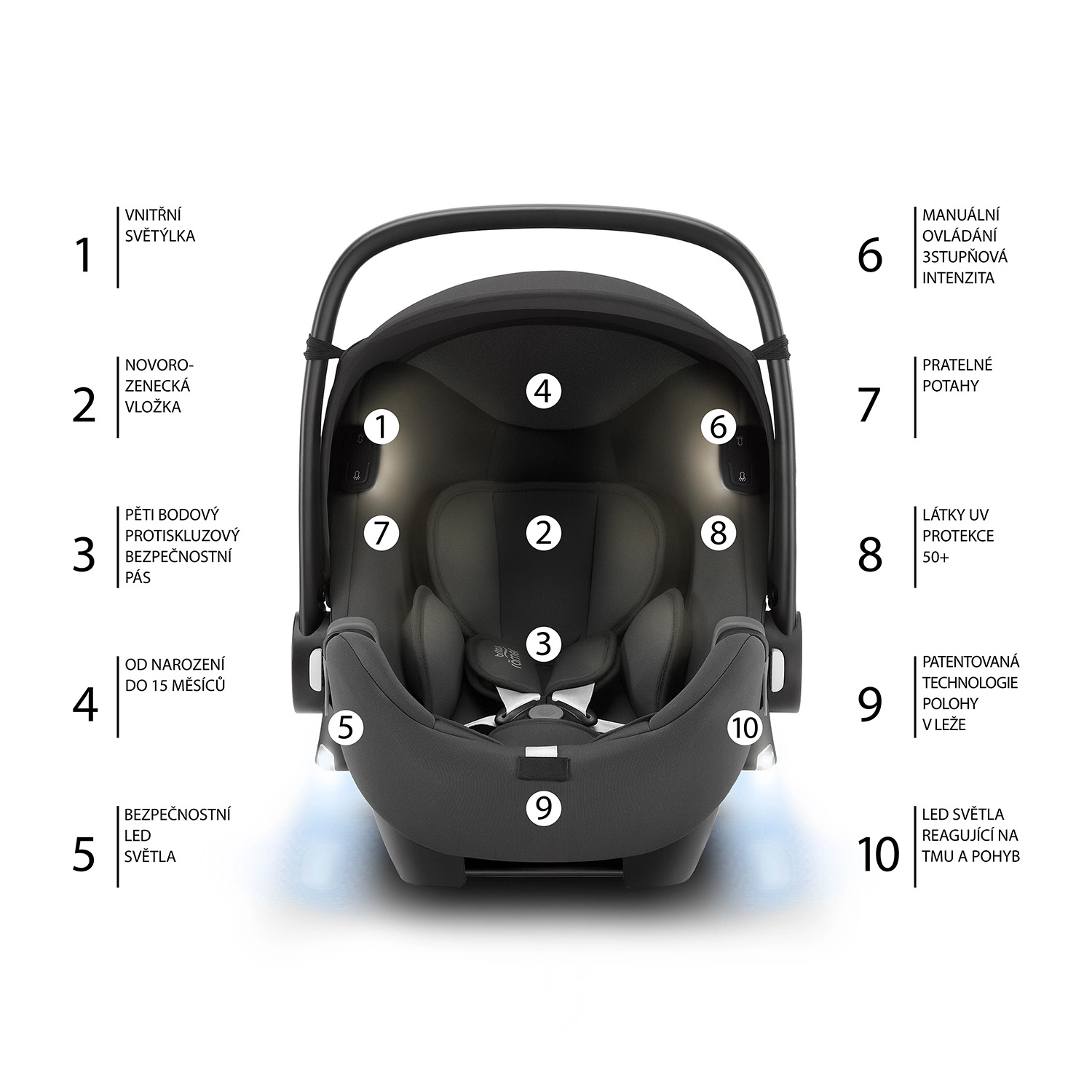 La alegere, urmăriți omologarea ECE R129 (i-Size) sau ECE R44/04, tipul de fixare (ISOFIX cu Top Tether sau picior de sprijin, ori centura de siguranță) și elementele-cheie de protecție: protecție laterală pentru cap și trunchi (SIP), centură în 5 puncte, materiale cu absorbție de energie și indicatori pentru instalare corectă. Sistemul rotativ de 360° ușurează așezarea copilului, tetiera reglabilă și pozițiile de înclinare asigură confort chiar și pe distanțe mai lungi. Pentru cea mai bună protecție, este recomandat ca copilul să fie transportat cu spatele la direcția de mers cât mai mult timp (reboard), la i-Size cel puțin până la 15 luni.