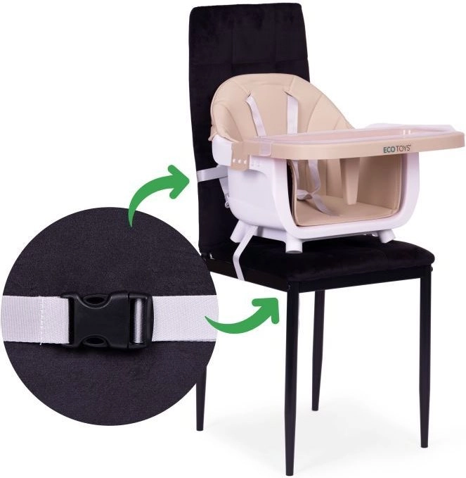 Un scaun de masă evolutiv sau reglabil permite setarea înălțimii șezutului și a suportului pentru picioare, iar spătarul reglabil susține postura corectă. Tăvița detașabilă cu margine înălțată ține dezordinea sub control. Husele lavabile și suprafețele netede asigură întreținere ușoară, în timp ce dimensiunile compacte și greutatea redusă facilitează manipularea zilnică. Pentru confort maxim, nu lipsesc tapițarea moale și posibilitatea reglării înălțimii scaunului la nivelul mesei.