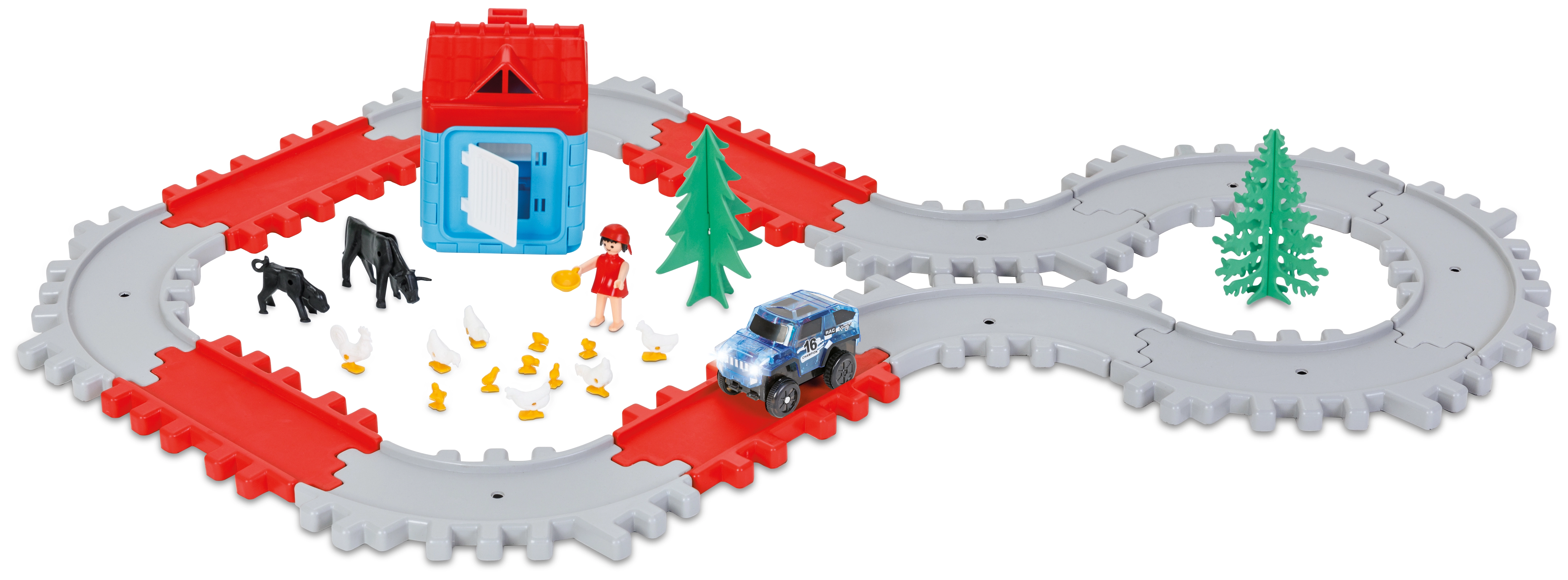 Iubitorii traficului urban vor alege Mașini – mașinuțe, monoposturi de curse, transport public, vehicule de intervenție și motociclete pentru viteză și scenarii educative. Pentru micii conductori există Trenuri – trenuri din lemn, șine și macazuri, poduri, tuneluri, locomotive și vagoane pentru construcții creative și extinderea rețelei de cale ferată. Iar cei care tânjesc după acțiune vor aprecia Telecomandă – mașini RC, avioane și bărci cu lumini și sunete pentru manipulare ușoară și antrenarea coordonării. Oferta include și utilaje și mașini de construcții (excavatoare, macarale, basculante), vehicule agricole (tractoare, combine), transport public (autobuze, tramvaie) și servicii de urgență (poliție, pompieri, ambulanță). Accesorii precum indicatoare rutiere, conuri, containere, macarale portuare, garaje, depouri, gări și turnuri de control permit crearea unor lumi întregi ale transportului și completarea încărcăturii. Datorită funcțiilor realiste, execuției rezistente și seturilor bogate, joaca este distractivă, educativă și pregătită pentru orice aventură.