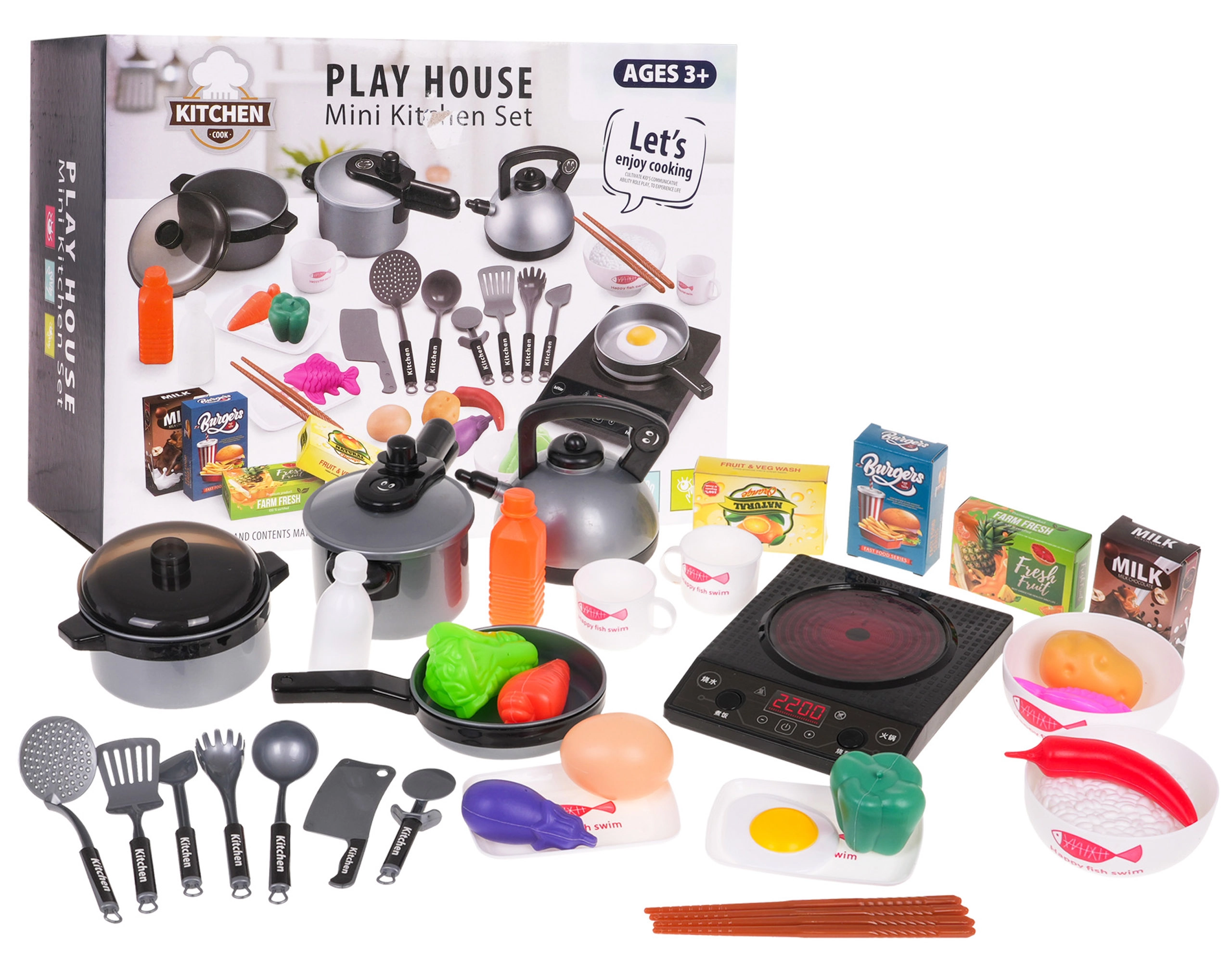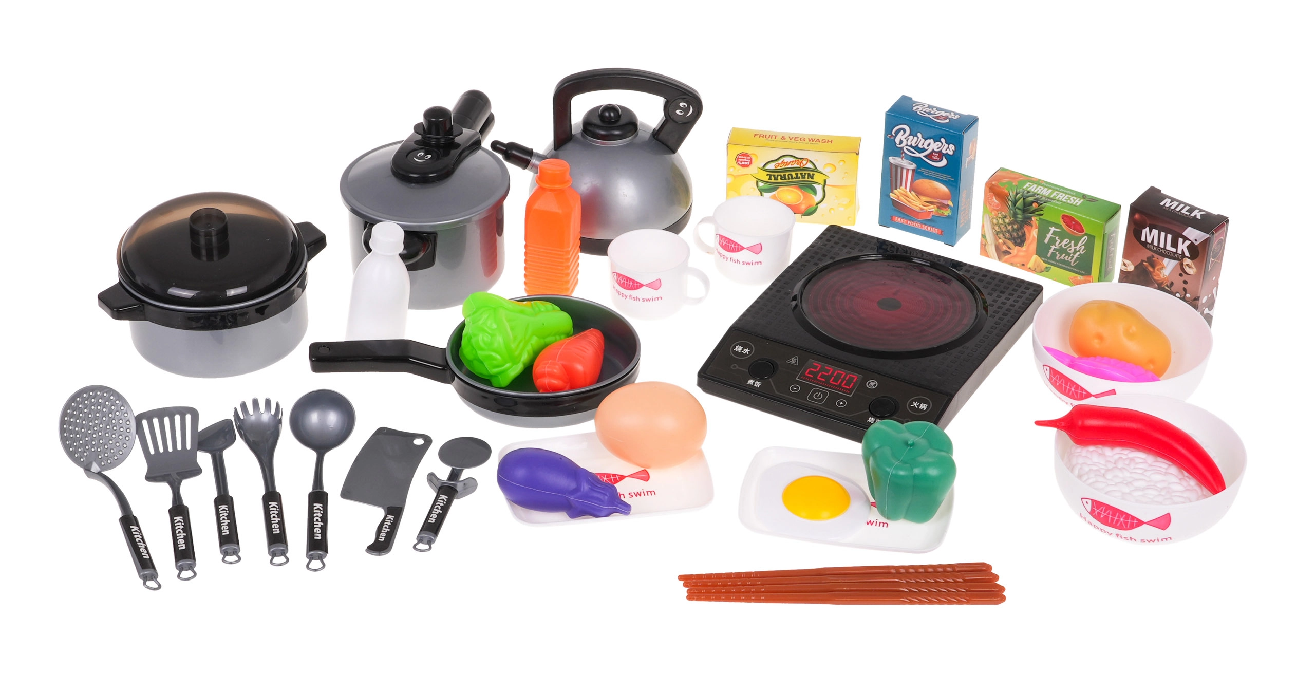 Bucătăria modernă pentru copii susține jocul de rol creativ și jocurile de meserii Bucătari: dezvoltă imaginația, abilitățile sociale, motricitatea fină și coordonarea. Electrocasnicele pentru copii și vesela pentru copii îi învață să planifice etapele, să sorteze alimentele, să numere porțiile și să denumească ingredientele; alimentele de tăiat cu arici/velcro asigură un joc distractiv și plin de sens.