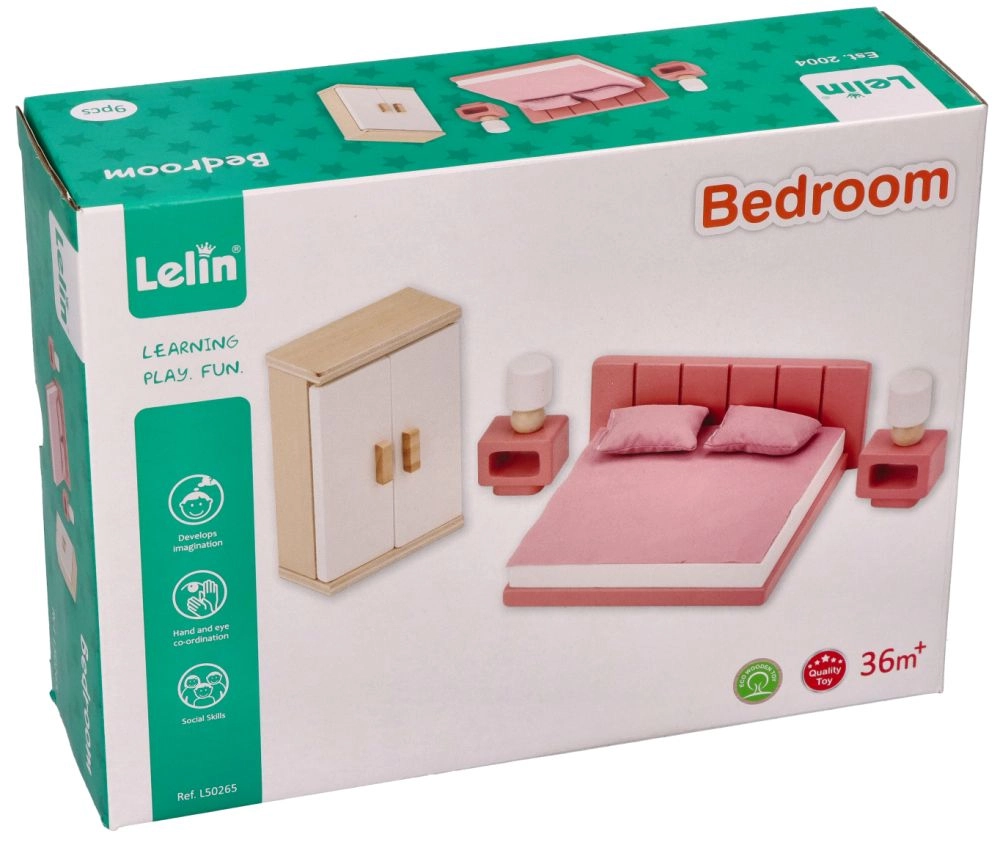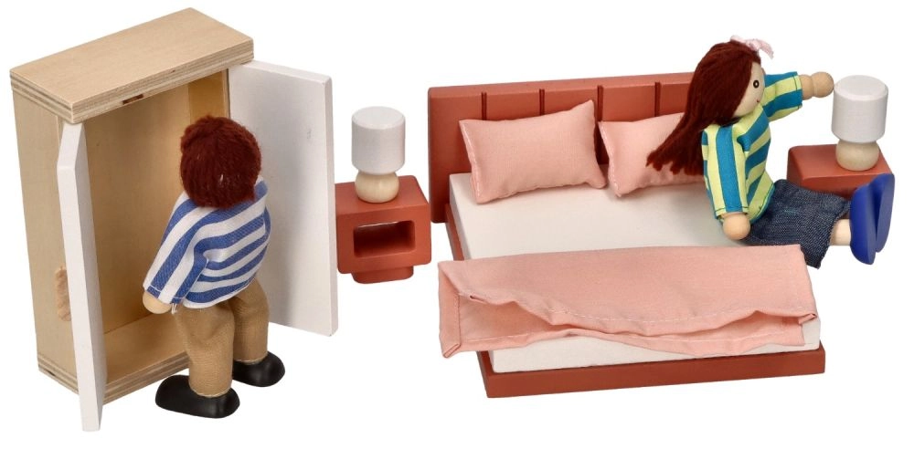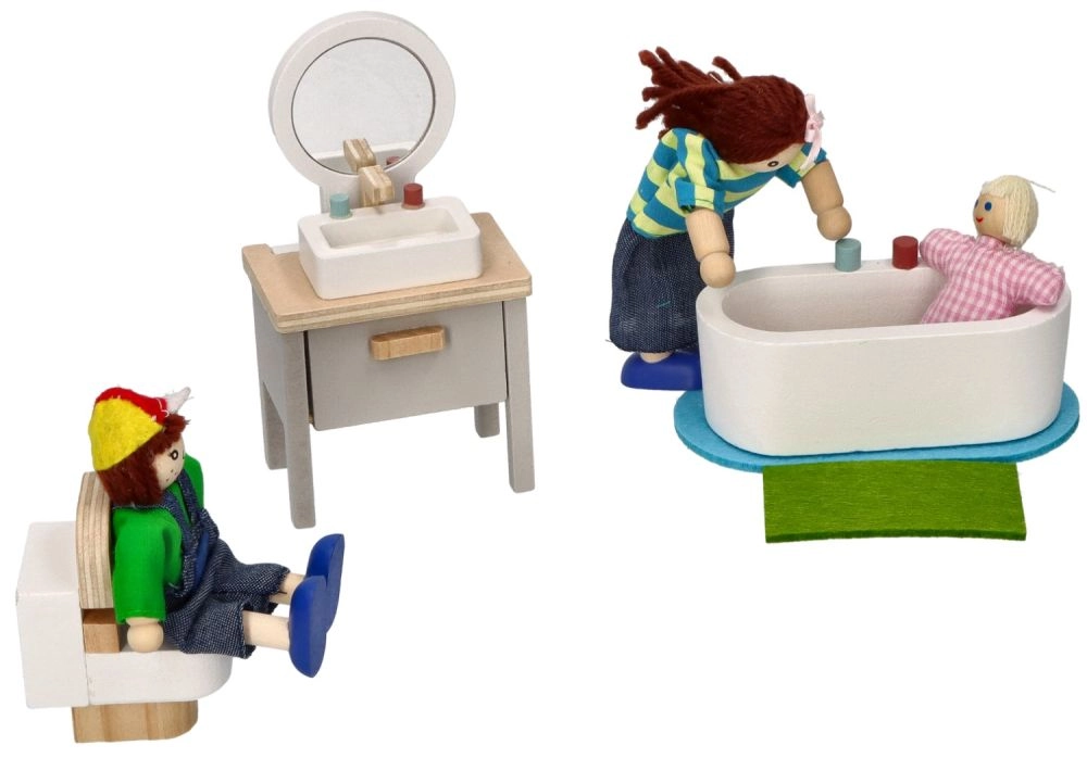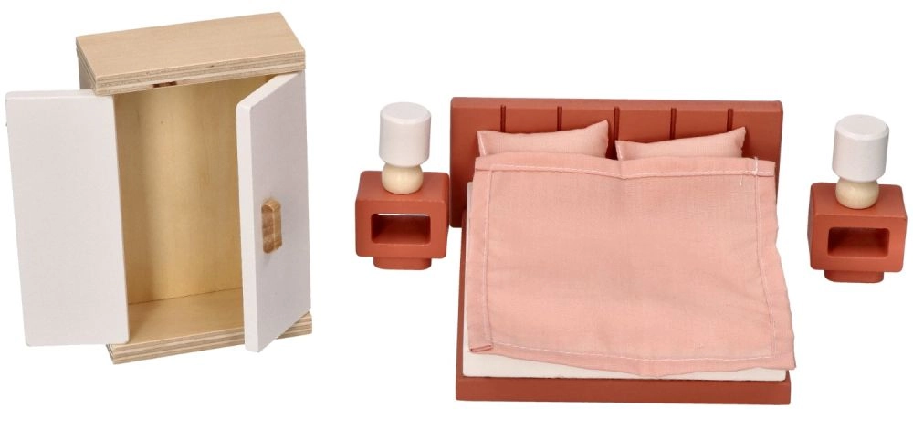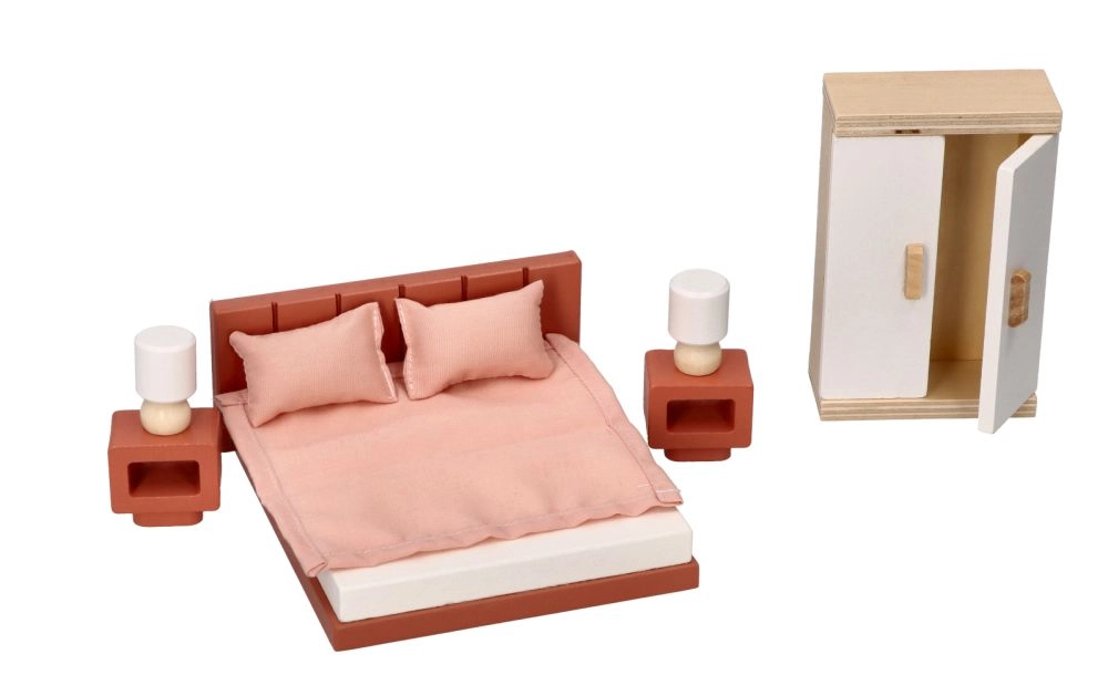 Mobilierul din lemn pentru păpuși, finisat cu vopsele pe bază de apă și muchii rotunjite, este completat de mobilierul ușor din plastic, cu tapițerii textile. Materiale sigure, execuție durabilă, construcție stabilă și întreținere ușoară garantează că pătuțul pentru păpuși, scăunelul, dulăpiorul sau masa cu scaune vor rezista jocului de zi cu zi. Elementele modulare și ușile care se deschid adaugă autenticitate jocului.