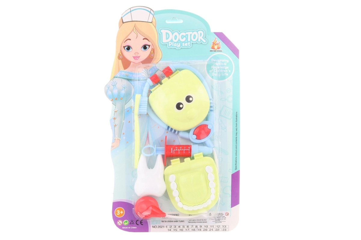 O trusă stomatologică pentru copii include adesea oglindiță, sondă, clește, pensetă, seringă, freză, periuță de dinți, pastă de dinți și un model de dinți; nu lipsesc halatul sau boneta de medic și practicul geamantan medical. Formele ergonomice pentru mâini mici, fără muchii ascuțite și din materiale sigure (lemn, plastic, textil) susțin motricitatea fină, comunicarea și empatia și ajută la reducerea fricii de dentist.
