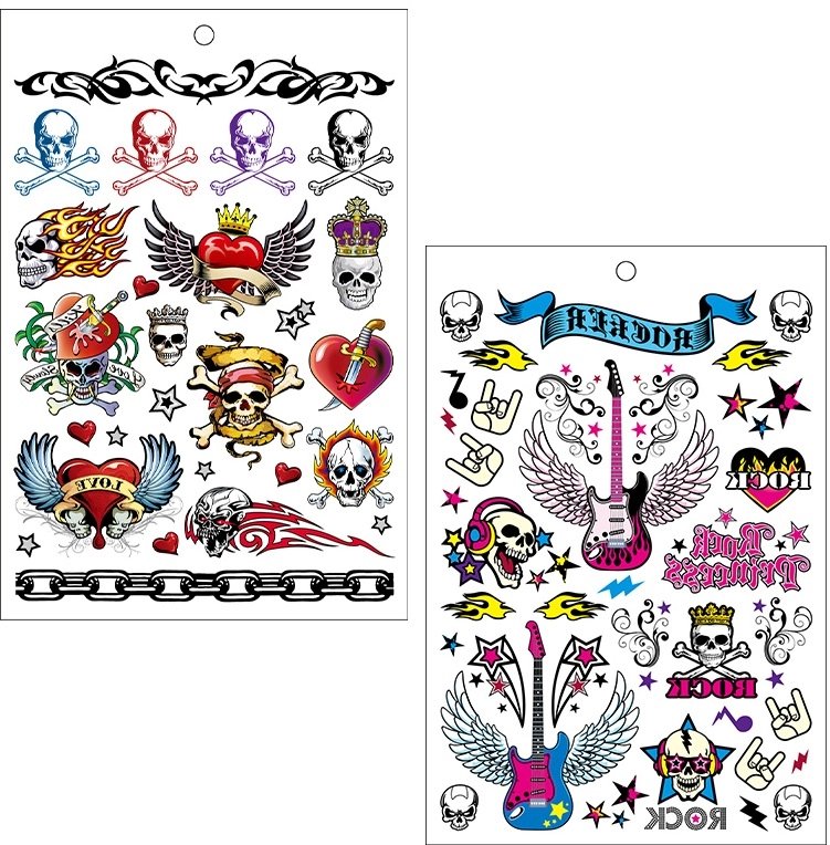 Aici găsiți markere pentru corp, șabloane colorate, ștampile, tatuaje cu sclipici, decalcomanii și abțibilduri – toate cu accent pe compoziție netoxică, lavabilitate și aplicare ușoară. Culorile temporare pentru corp și seturile de tatuaje pentru copii se pot șterge simplu cu apă și săpun, astfel încât experimentarea cu designuri, inscripții și motive este întotdeauna fără griji.