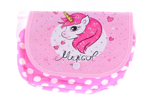 Gențile pentru fete sunt concepute pentru confort și siguranță: materiale textile și din piele ecologică ușoare și rezistente, suprafețe ușor de curățat și închidere sigură cu fermoar, magnet sau capse. Bretelele ajustabile permit purtarea pe umăr sau ca geantă crossbody pentru copii; marginile moi și greutatea redusă sunt pe placul celor mici. Motive cu animăluțe, inimioare, flori, stele sau unicorni, culori pastel și finisaj strălucitor cu sclipici subliniază stilul micii purtătoare.