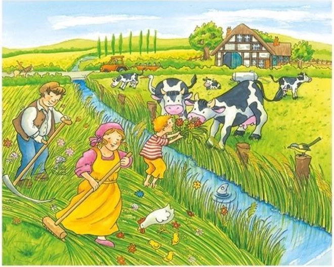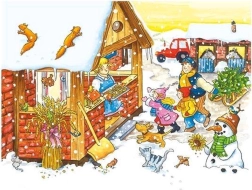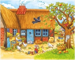 Descoperiți lumea rurală cu animăluțe și oameni pe tot parcursul anului. Din 12 cuburi din lemn rezistente veți asambla 6 scene ilustrate – de la curtea de primăvară, prin munca de vară, până la bucuriile iernii. Cuburile sunt ideale pentru preșcolari, dezvoltă coordonarea mână–ochi și îi învață pe copii să perceapă relația părților cu întregul.