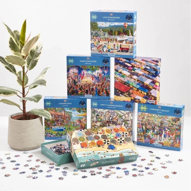 Descoperă bucuria asamblării cu puzzle-ul GIBSONS Zile de vară. Datorită cartonajului de calitate și tăierii precise, piesele se îmbină perfect, iar motivul cu atmosferă estivală va încânta orice pasionat de puzzle-uri. Ideal pentru seri liniștite și momente petrecute împreună cu familia.