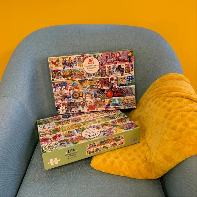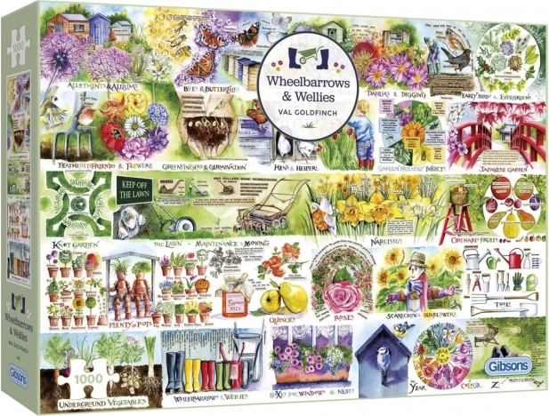Bucurați-vă de ore de relaxare cu puzzle-urile de calitate GIBSONS. Motivul curții rustice, cu roabe și cizme de cauciuc, oferă o ilustrație detaliată și o provocare plăcută. 1000 de piese și dimensiune aproximativ 68 × 49 cm după asamblare. Inscripțiile de pe puzzle sunt în engleză.