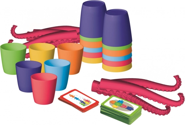 Setul include pahare colorate și tentacule, care asigură distracție grozavă și dezvoltarea coordonării.