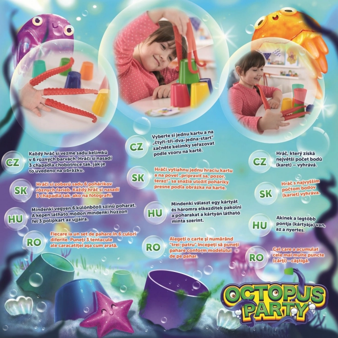 Jocul Octopus Party de la TREFL este alegerea ideală pentru distracție și dezvoltarea copiilor. Este un joc interactiv în care atât cei mici, cât și adulții vor fi încântați de provocarea de a manevra tentaculele, încercând să prindă paharele după model și să obțină cât mai multe puncte.