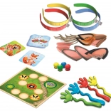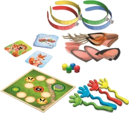 Jocul conține tot ce este necesar pentru o distracție grozavă: 4 palete, 4 bentițe, 6 perechi de urechi, 45 de cărți, 4 pioni și o tablă de joc. Formează o echipă și pornește într-o aventură care te va atrage în fascinanta lume a animalelor.