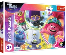 Bucurați-vă de momente petrecute împreună cu copiii cu puzzle-ul colorat TREFL din filmul Troli 2. Piesele mari MAXI sunt ideale pentru mâinile mici, puzzle-ul are 24 de piese și, după asamblare, măsoară aproximativ 60 × 40 cm. O alegere excelentă pentru dezvoltarea motricității fine, a răbdării și a gândirii logice la copiii de la 3 ani.
