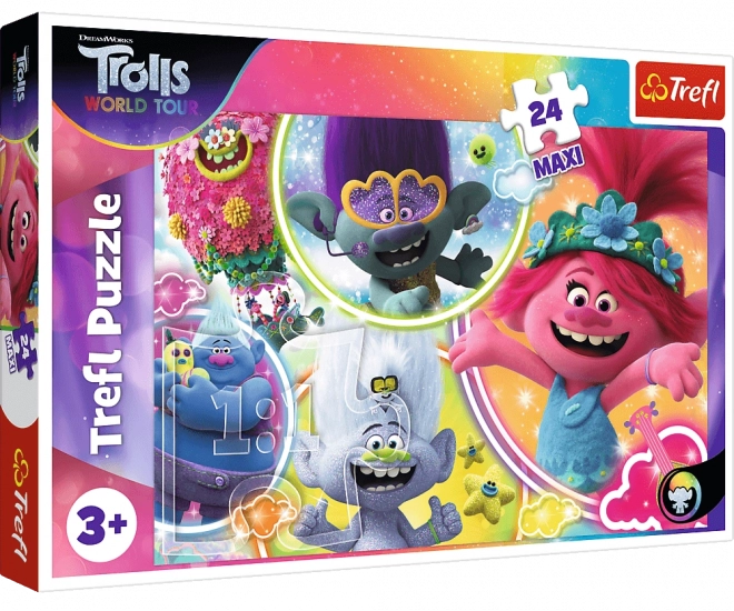 Descoperiți lumea magică a muzicii și culorilor cu puzzle-ul TREFL Troli 2: Lumea noastră muzicală. Datorită pieselor mari MAXI, copiii manipulează ușor, iar asamblarea este distractivă și educativă. Motivul cu personajele îndrăgite din film îi va încânta pe toți micii fani.
