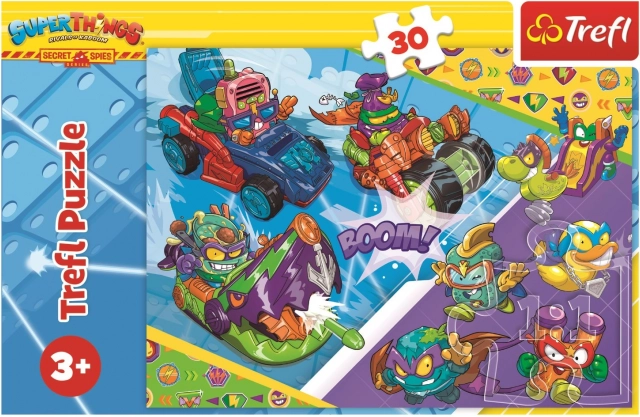 Puzzle pentru copii cu motivul SuperThings: echipa super spionilor aduce distracție și dezvoltarea abilităților pentru cei mici. Conține 30 de piese, recomandat de la 3 ani, iar după asamblare are dimensiunea de aproximativ 27 × 20 cm – ideal pentru primele încercări de asamblare și pentru antrenarea motricității fine și a concentrării.