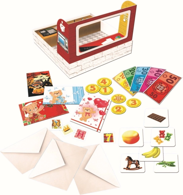 Două jocuri interactive care conduc copiii într-o lume a comerțului și a serviciilor poștale. Setul educativ conține diverse elemente pentru o prezentare realistă a rolurilor.