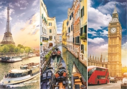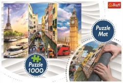 Tot ce aveți nevoie pentru asamblarea puzzle-ului se găsește într-o singură cutie. Setul combină colajul estetic al orașelor Paris–Veneția–Londra și covorașul rulabil funcțional, care economisește spațiu și protejează puzzle-ul neterminat sau finalizat. Pe covoraș sunt marcate clar contururi pentru puzzle-urile TREFL de 500, 500 panorama, 1000 și 1500 de piese, astfel încât știți întotdeauna exact unde să poziționați imaginea.