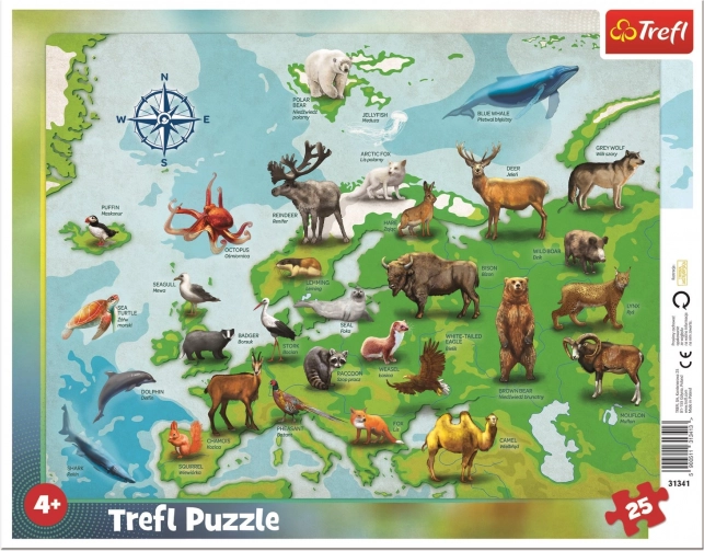 Bucurați-vă de distracție cu puzzle-ul de la TREFL, care prezintă harta Europei cu animale. Datorită formelor neregulate ale pieselor, oferă noi posibilități de asamblare pentru copii de la 4 ani.