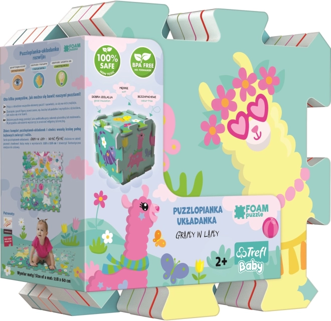 Distractive și sigure, puzzle-uri din spumă cu motivul lamelor drăgălașe pentru copii de la 2 ani. Covorașul din material de calitate, cu grosime superioară de 1,5 cm, este moale, lavabil și sigur pentru sănătate. Din opt piese puteți forma o suprafață de joacă, un cub sau un tunel, iar după joacă îl ștergeți ușor cu un șervețel/ lavetă umedă.
