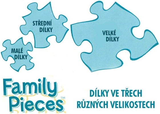 Bucurați-vă de momente împreună cu puzzle-ul de familie cu un motiv adorabil de pui din șură. Pachetul conține piese mari, medii și mici, astfel încât fiecare își găsește partea sa din imagine – copiii piesele mai mari, iar pasionații experimentați pe cele mai mici.