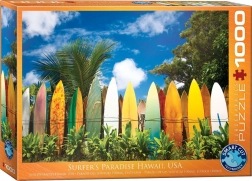 Descoperă provocarea și relaxarea într-una: puzzle de calitate EUROGRAPHICS cu motivul Paradisul surferilor și 1000 de piese. Matrița specială cu forme neregulate ale pieselor crește dificultatea asamblării și oferă o experiență unică. După asamblare rezultă o imagine cu dimensiunile de aprox. 67,63 × 48,89 cm, ideală pentru înrămare.