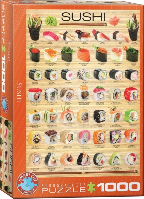 Puzzle-ul EUROGRAPHICS cu motiv sushi vă va aduce nu doar o experiență estetică, ci și o provocare mai mare datorită ștanțării unice. Datorită formei atipice a pieselor, vă veți testa gândirea logică și răbdarea. Textele de pe puzzle sunt în limba engleză, iar pentru iubitorii bucătăriei japoneze pe partea din spate a cutiei se găsește o rețetă de sushi.