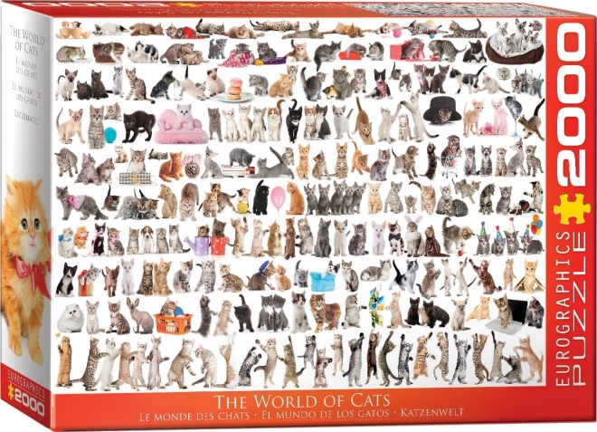 Bucurați-vă de lumea pisicilor în format mare cu puzzle-ul EUROGRAPHICS. Datorită celor 2000 de piese, ștanțării neconvenționale și formelor neobișnuite, asamblarea oferă un grad de dificultate mai ridicat și ore îndelungate de distracție. După asamblare, imaginea măsoară aproximativ 99,7 × 67,6 cm.