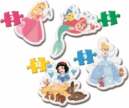 Cu acest set Primele mele puzzle‑uri, copiii se vor bucura să asambleze imagini cu eroinele îndrăgite din poveștile DISNEY. Patru niveluri diferite de dificultate (3, 6, 9 și 12 piese) permit progresul natural și sporesc încrederea la fiecare imagine finalizată. Datorită pieselor extra mari și groase (3 mm), puzzle‑ul este ușor de manevrat chiar și de cele mai mici mâini.