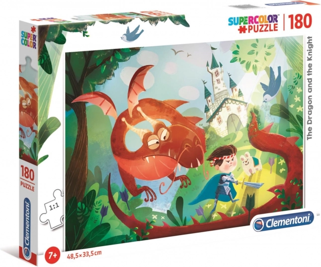 Puzzle pentru copii cu motiv dragon și cavaler, care dezvoltă abilități manuale și capacități de observare. Materialele de calitate și culorile vii asigură o experiență de joc excelentă.