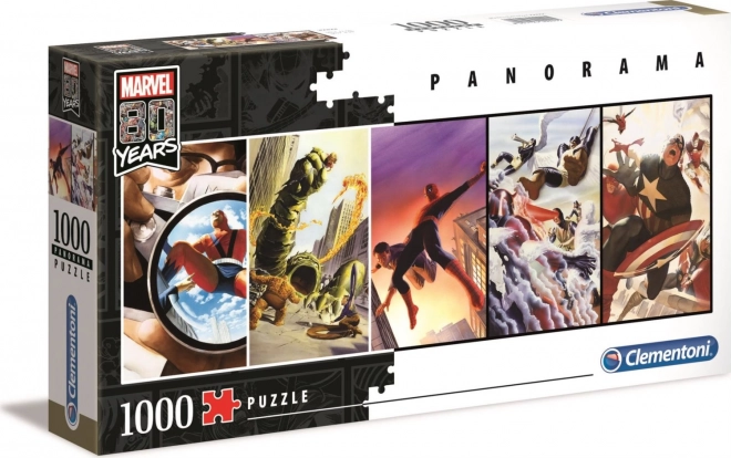 Bucură-te de o asamblare de calitate cu puzzle-urile panoramice CLEMENTONI care sărbătoresc 80 de ani MARVEL. O mie de piese oferă ilustrații detaliate, un decupaj precis și calitate înaltă a tiparului pentru o imagine perfect clară, de aproximativ 98 × 33 cm.