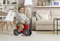Bicicleta de echilibru pentru copii Mini Custom, roșie, sprijină dezvoltarea naturală a motricității și a echilibrului și oferă multă distracție acasă și în grădină. Datorită dimensiunilor compacte de 54 × 22,5 × 38 cm și înălțimii șeii de 27 cm, copiii se pot împinge ușor și urca în siguranță.