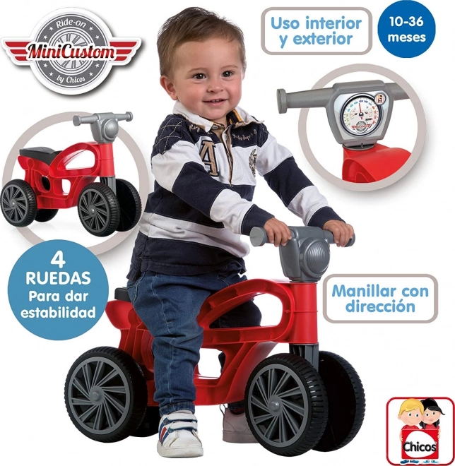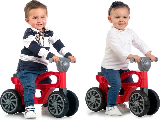Hai la joacă! Această bicicletă de echilibru atractivă, în formă de motocicletă, este ideală pentru cei mai mici rideri care încep să descopere lumea și să învețe să își mențină echilibrul. Datorită celor patru roți este ușoară, sigură și stabilă, are o rezistență excelentă a materialului și este potrivită pentru utilizare la interior și în aer liber. O alegere perfectă pentru copii de la 10 luni până la 3 ani.