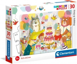 Puzzle pentru copii din gama SuperColor de la CLEMENTONI cu motiv de aniversare, care îi va încânta pe micii constructori de la 3 ani. Materiale de calitate și culori clare, intense garantează durabilitate și bucurie la asamblare. Datorită pieselor mai mari și rezistente, puzzle-ul dezvoltă îndemânarea manuală, spiritul de observație și răbdarea. Imaginea finală măsoară aproximativ 33,5 × 23,5 cm.