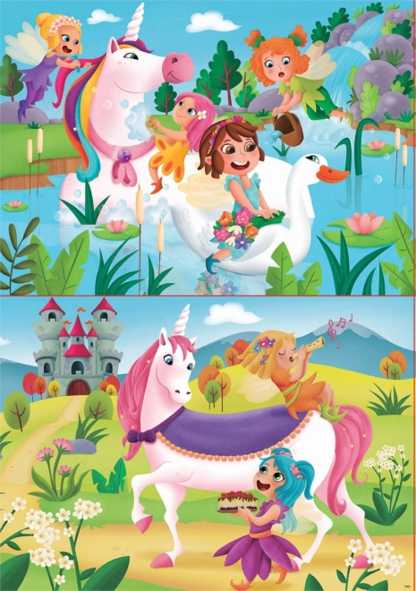 Încântați copiii cu lumea magică a zânelor și a unicorni lor cu pachetul dublu de puzzle de la EDUCA. Pachetul conține 2 puzzle-uri a câte 20 de piese cu ilustrații superbe, care dezvoltă motricitatea fină, răbdarea și percepția vizuală. După asamblare, fiecare puzzle are dimensiunea de aprox. 28 × 20 cm – mărimea ideală pentru copiii care învață să asambleze.