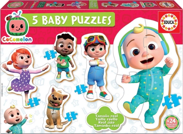 Puzzle contur pentru bebeluși de la marca EDUCA, special concepute pentru cei mai mici, de la 12 luni. Setul include 5 puzzle-uri progresive cu 3–5 piese, care sunt mari și groase pentru o prindere ușoară. Puzzle-urile cu tematica COCOMELON dezvoltă motricitatea fină, atenția și imaginația și stimulează curiozitatea copiilor.