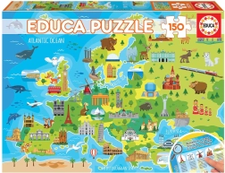 Educa puzzle Harta Europei este o modalitate excelentă de a distra și educa copiii! Conține denumirile mărilor și oceanelor în limba engleză și un pliant informativ cu numele animalelor sau monumentelor în mai multe limbi europene.