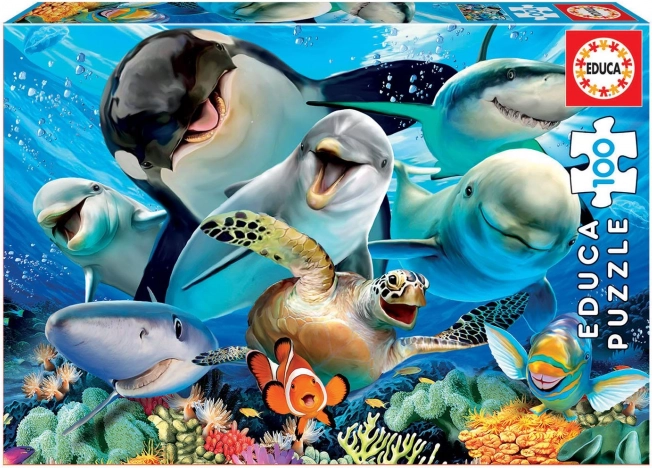 Descoperă magia distracției cu puzzle-ul Educa, care conține o sută de piese și un motiv minunat de selfie-uri subacvatice, care va încânta orice iubitor al lumii marine.