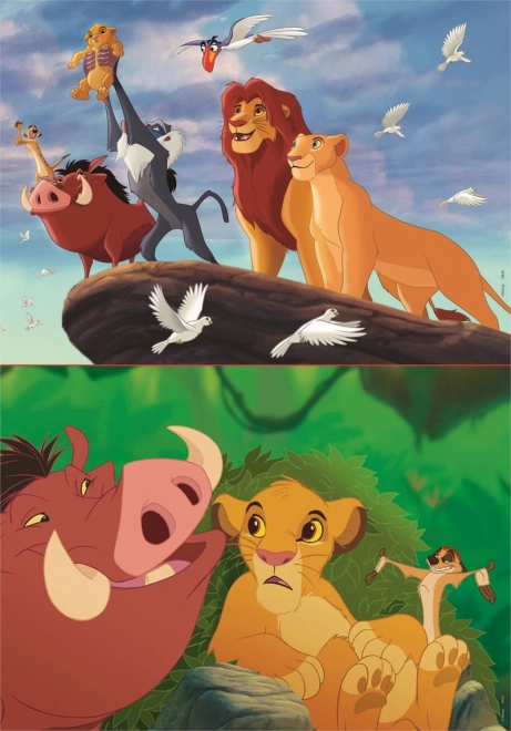 Pachet dublu de puzzle-uri pentru copii cu motivul REGELE LEU de la EDUCA. În pachet găsiți 2×48 piese, fiecare puzzle asamblat are dimensiunea aprox. 28 × 20 cm – distracție grozavă și antrenament al concentrării pentru micii pasionați de puzzle.