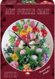 Bucură-te de relaxare creativă cu un set original care îmbină puzzle și ceas într-unul singur. După asamblarea motivului romantic „Știi că te iubesc” cu flori de primăvară, îl fixezi ușor cu adeziv, îl lipești pe placa suport și atașezi mecanismul ceasului. Rezultatul este un ceas decorativ unic, care va înfrumuseța casa ta.
