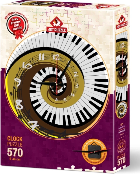 Descoperă combinația originală dintre asamblare și design: puzzle ceas cu motiv clape, pe care, după ce îl termini, îl transformi într-un ceas de perete funcțional. Pachetul include 570 de piese, o placă de bază solidă, mecanism de ceas și ramă cu conectori. Cadou grozav pentru iubitorii de puzzle-uri și muzică.