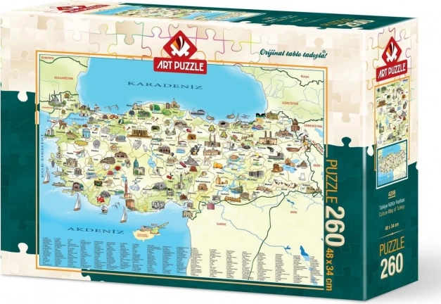 Descoperiți frumusețile Turciei cu puzzle-ul "Harta Culturală" de 260 de piese de la ART PUZZLE. Distracție excelentă pentru toți iubitorii de călătorii!