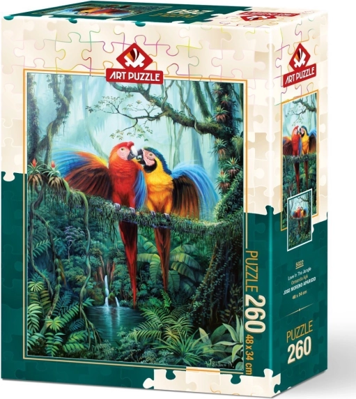 Bucurați-vă de asamblarea unui motiv romantic în junglă cu acest puzzle de 260 de piese Dragoste în junglă de la ART PUZZLE. Fabricarea sa de precizie garantează calitatea fiecărei piese, în timp ce dimensiunea de 48 x 34 cm după asamblare oferă o dimensiune ideală pentru manipulare ușoară.
