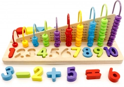 Setul include o placă din lemn cu operațiuni de adunare și scădere. Mărgeaua este mutată de pe o parte pe alta pentru a obține rezultate, ceea ce constituie un mod excelent de a învăța să rezolvați ecuații simple.