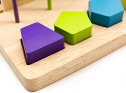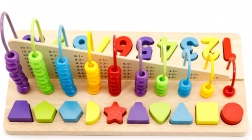 În afara abacului, setul mai include și forme și numere din lemn colorate. Sprijină recunoașterea formelor și orientarea în numere.
