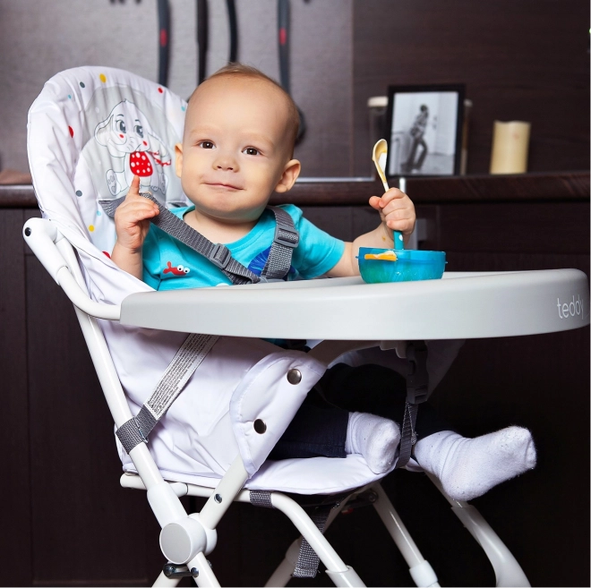Scaunul de masă pliabil CHIPOLINO Teddy este o alegere ușoară și sigură pentru hrănirea zilnică și primele mese solide. Oferă un scaun lat și confortabil, centuri de siguranță în 5 puncte, tăviță spațioasă și curățare ușoară. Datorită pliării compacte, îl depozitezi rapid chiar și în spații mici.