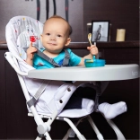 Scaun practic și stabil pentru copii care pot sta singuri, până la 15 kg. Materiale plăcute, ham de siguranță în 5 puncte și suport reglabil pentru picioare pe 3 niveluri asigură confort la fiecare masă. Tăvița spațioasă cu loc pentru cană se întreține ușor curată.