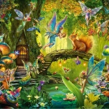 Capturați magia pădurii cu puzzle-ul Schmidt Zâne în pădure extraordinar. Acest puzzle aduce fanilor lumii fantastice o scenă de pădure încântătoare plină de zâne colorate, veverițe și ciuperci de basm.