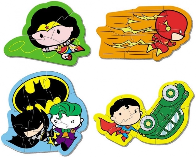 Primii pași în lumea puzzle-urilor sunt ușor de făcut chiar și de cei mai mici datorită setului de patru puzzle-uri conturate cu eroii îndrăgiți Justice League. Fiecare puzzle are un număr diferit de piese (3, 6, 9, 12), astfel încât copilul avansează natural de la ușor la mai dificil și își construiește o încredere sănătoasă.