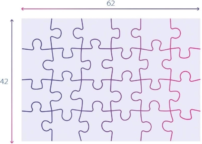 Puzzle-ul asamblat are dimensiuni de cca 62 x 42 cm, ceea ce înseamnă că este potrivit pentru asamblare confortabilă pe podea. Acest tip de puzzle este un mijloc excelent de a dezvolta abilitățile copiilor și poate servi ca o formă distractivă de educare a abilităților motorii.