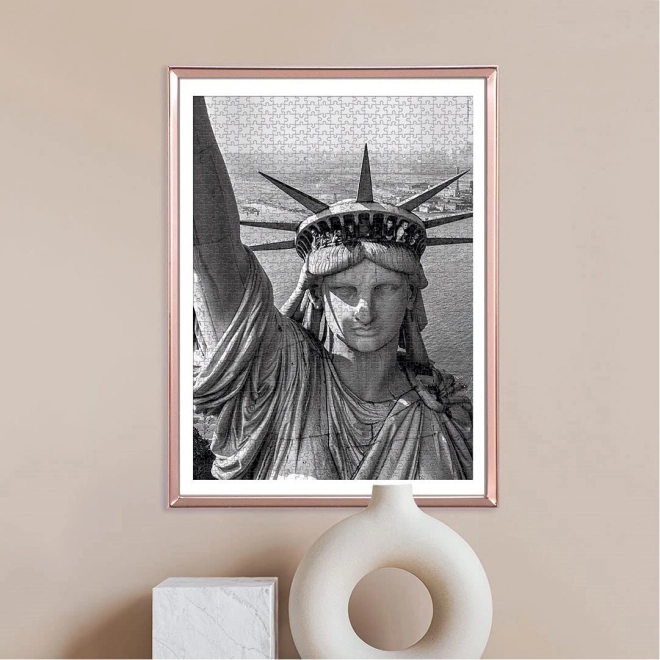 Acest puzzle elegant în alb-negru, cu motivul Statuii Libertății, îmbină designul și distracția. Datorită tehnologiei de tipărire de top, ies în evidență detaliile fine și texturile, crescând plăcerea asamblării și efectul vizual final. Cartonul gros pentru puzzle asigură îmbinarea precisă a pieselor și o rezistență ridicată.